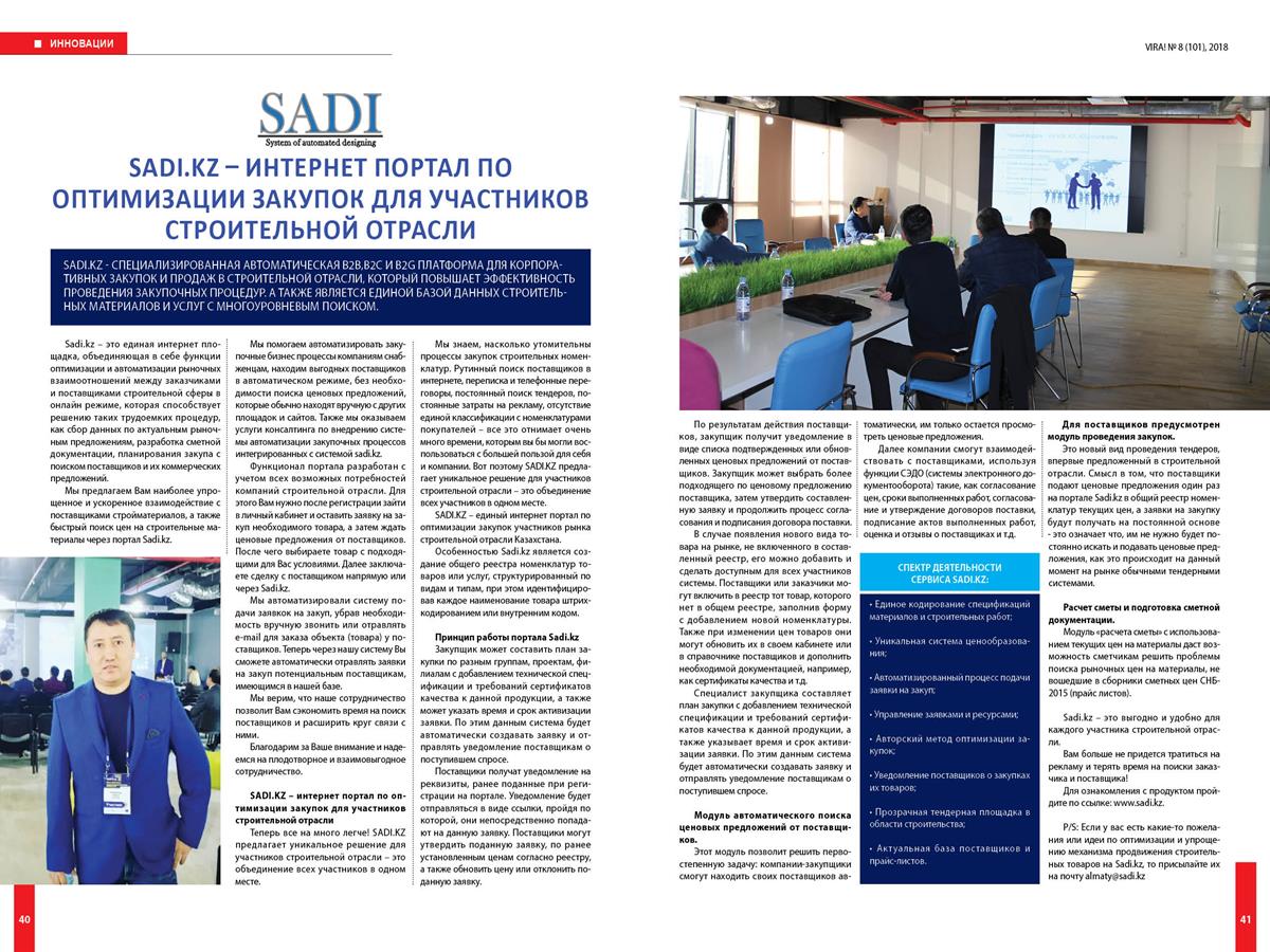 SADI - System of automated designing SADI.KZ - ИНТЕРНЕТ ПОРТАЛ ПО ОПТИМИЗАЦИИ ЗАКУПОК ДЛЯ УЧАСТНИКОВ СТРОИТЕЛЬНОЙ ОТРАСЛИ. SADI.KZ - СПЕЦИАЛИЗИРОВАННАЯ АВТОМАТИЧЕСКАЯ В2В,В2С И B2G ПЛАТФОРМА ДЛЯ КОРПОРАТИВНЫХ ЗАКУПОК И ПРОДАЖ В СТРОИТЕЛЬНОЙ ОТРАСЛИ, КОТОРЫЙ ПОВЫШАЕТ ЭФФЕКТИВНОСТЬ ПРОВЕДЕНИЯ ЗАКУПОЧНЫХ ПРОЦЕДУР. А ТАКЖЕ ЯВЛЯЕТСЯ ЕДИНО...